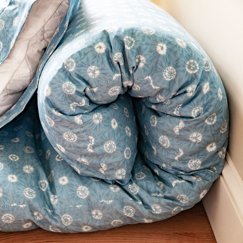 Our shikifutons are filled with cotton grown right here in the United States. We produce our cotton batting out of our facility in New York, which allows us to guarantee the quality of our materials, support ethical practices, and help provide jobs that sustain families and strengthen communities.
