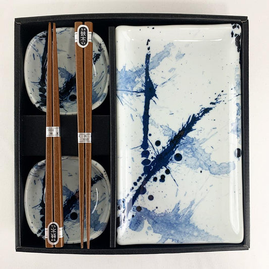Sushi for Two Plate Set, Blue Splatter