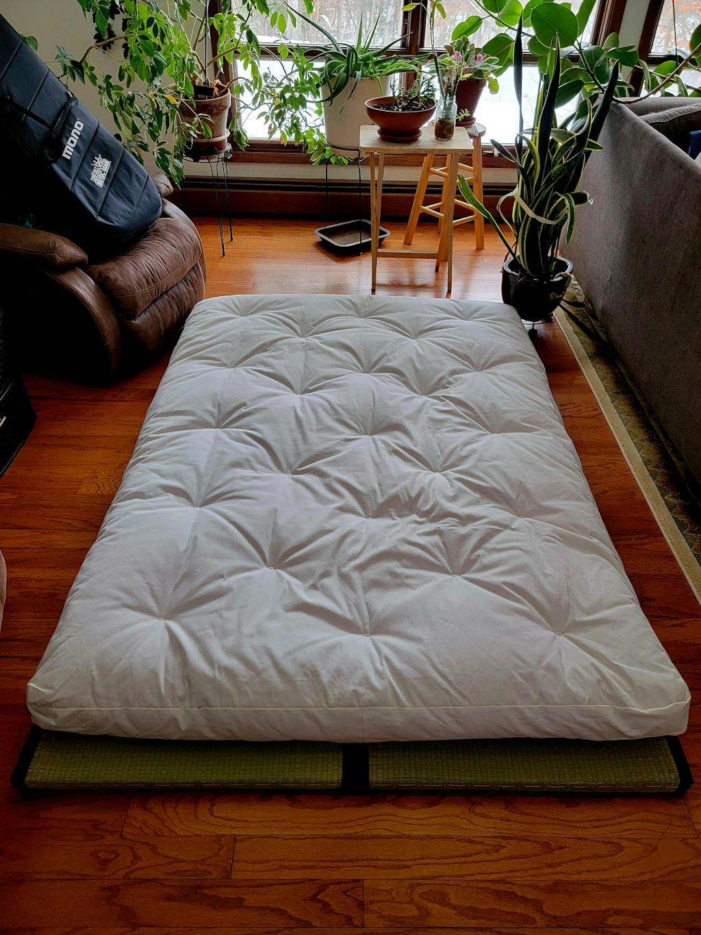 Shikifuton covers, shikifuton mattress protector, and Japanese pillowcases sold separately.