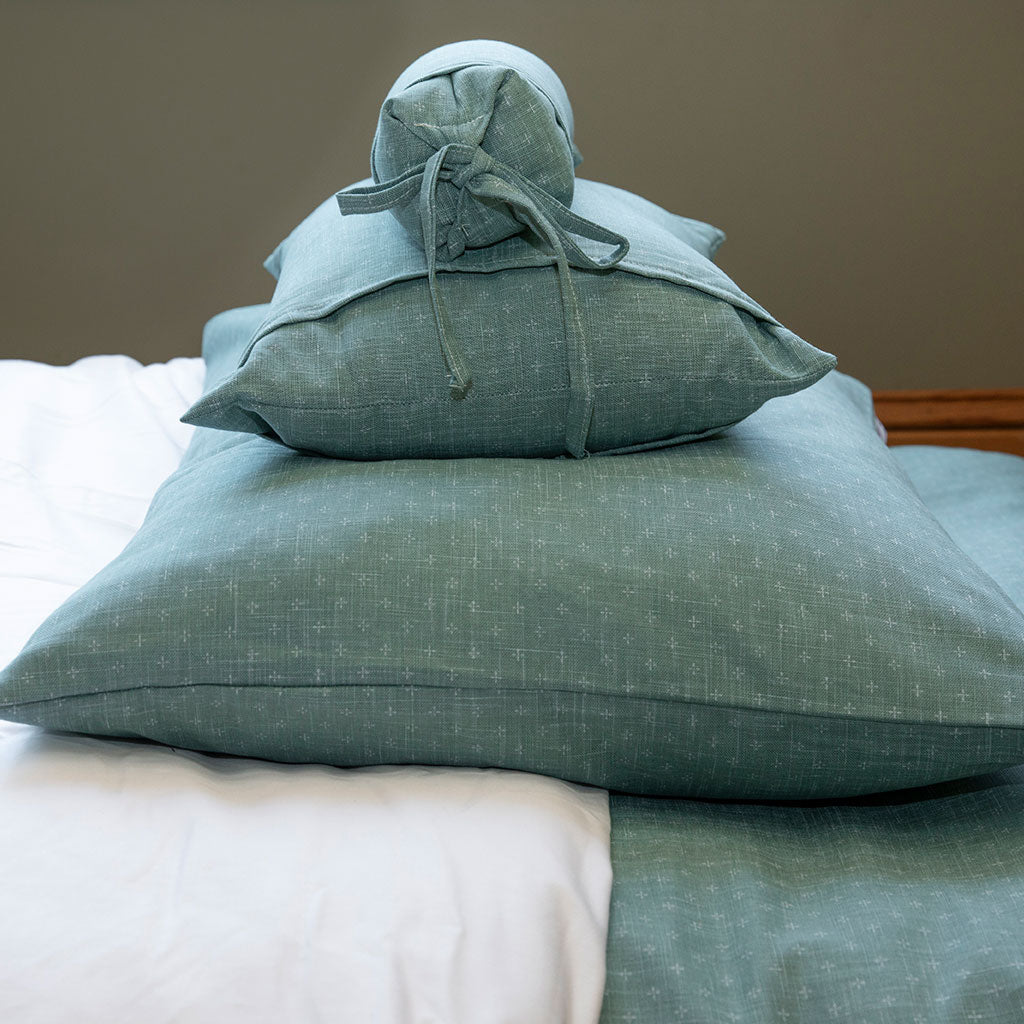 1x Rectangular Buckwheat Pillow in Asagi Green with matching sheath