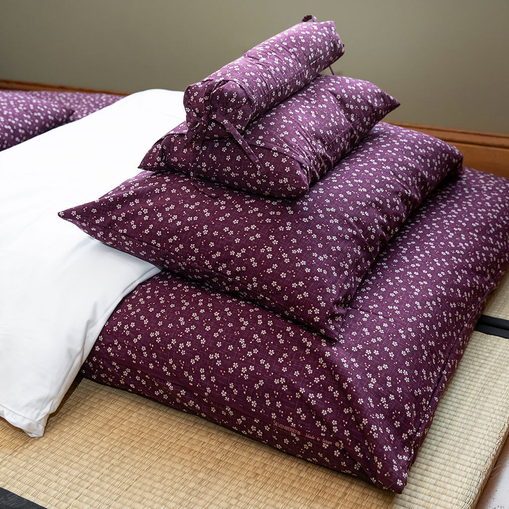 This futon bundle features various items from our line of authentic Japanese bedding in the Sakura Purple fabric.