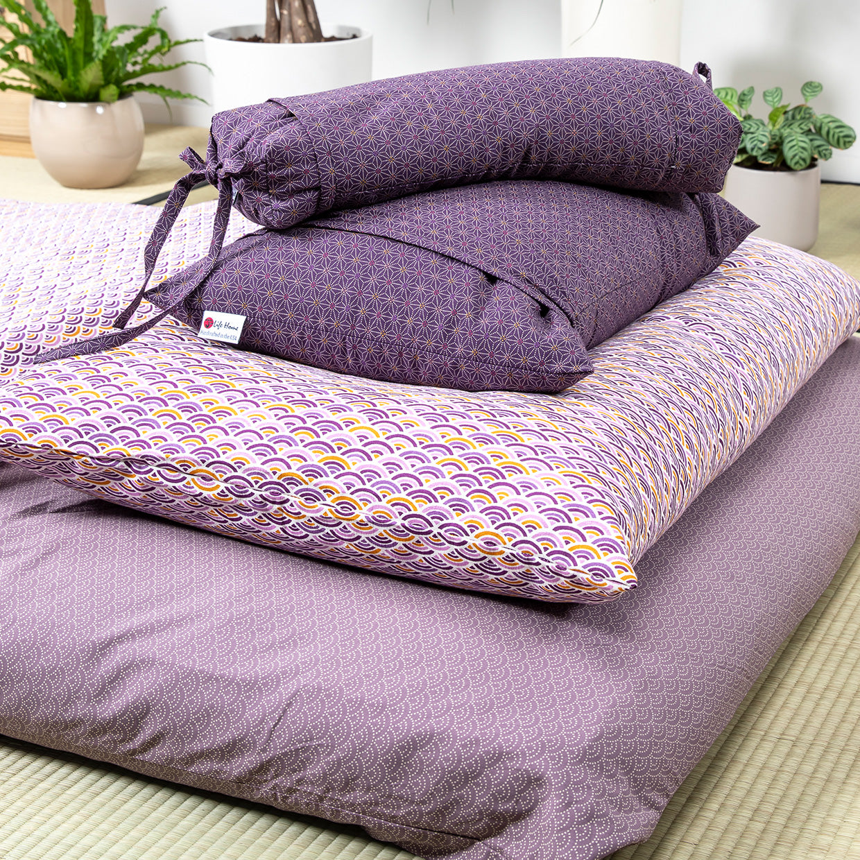 This futon bundle features various items from our line of authentic Japanese bedding in some of our best-selling patterns: Seika Ha & Asanoha in Purple & Lavender