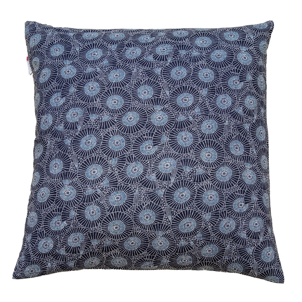 Each 18" pillow cover is handmade to order in the USA of 100% cotton fabric. This style is decorated with a navy Japanese parasol (higasa; 辻倉) and traditional hand fan (sensu; 扇子) pattern with blue accents.