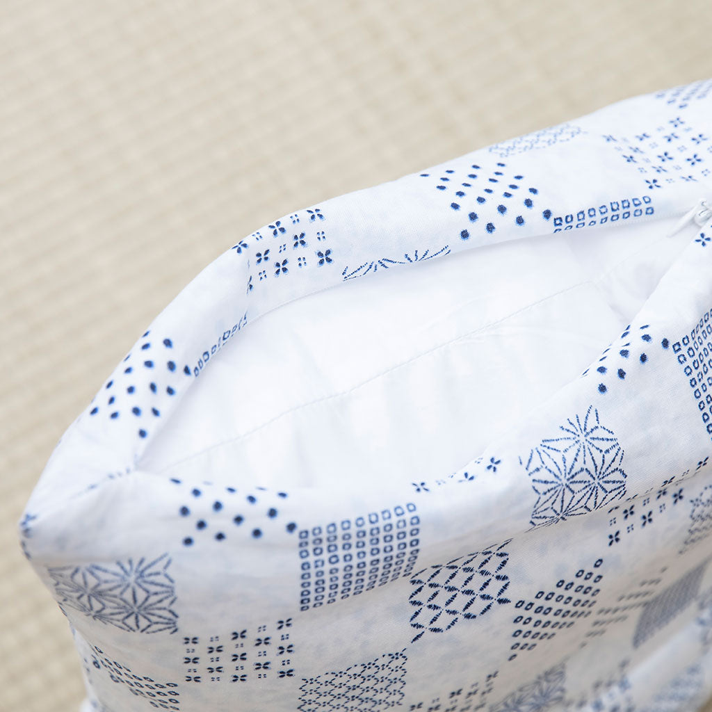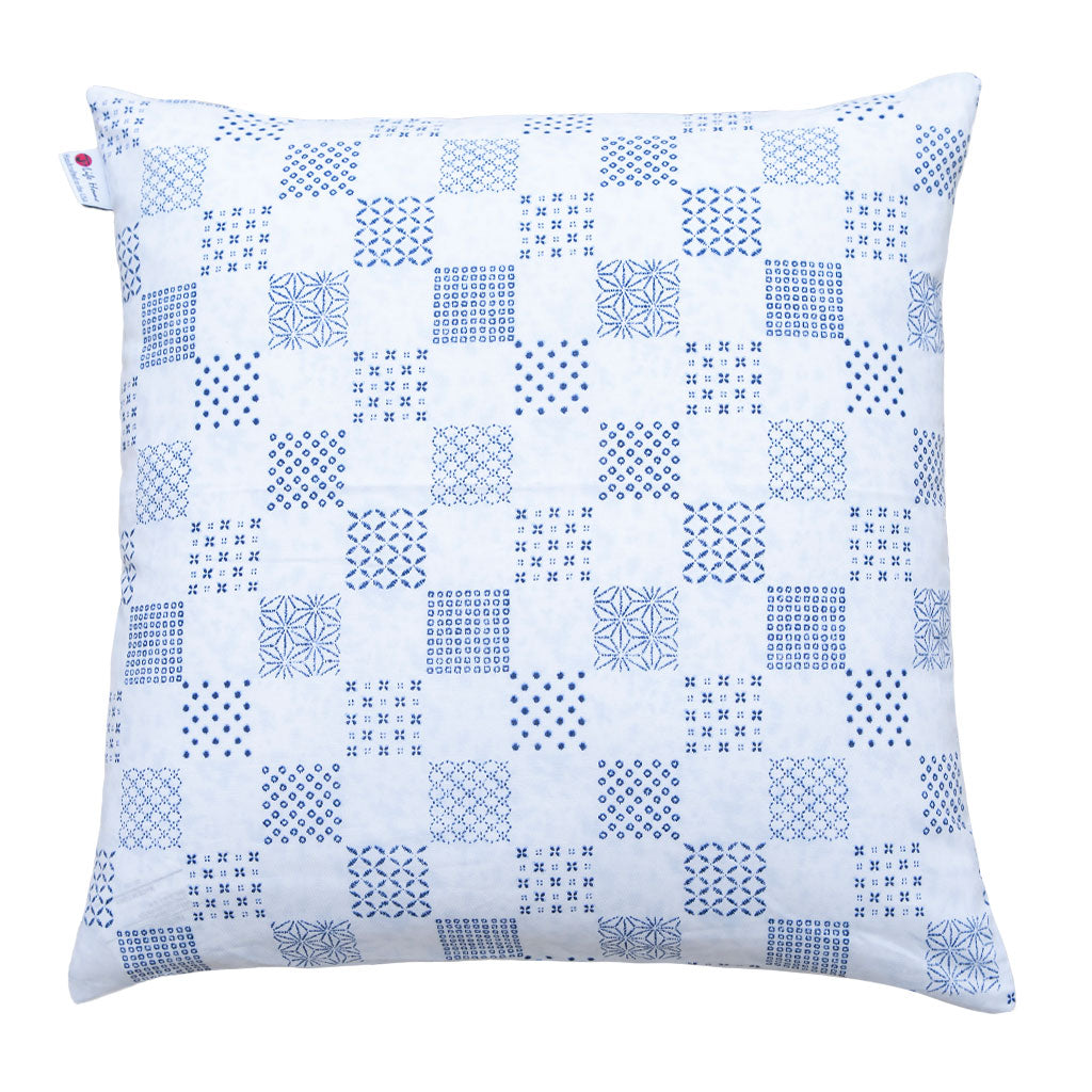 Each 18" pillow cover is handmade to order in the USA of 100% cotton fabric. This Japanese throw pillow features a blue and white checkerboard pattern composed of various traditional Japanese patterns. The name Igo (囲碁) is inspired by the strategy board game that is popular in Japan. It utilizes a grid-style board similar to a checkerboard.