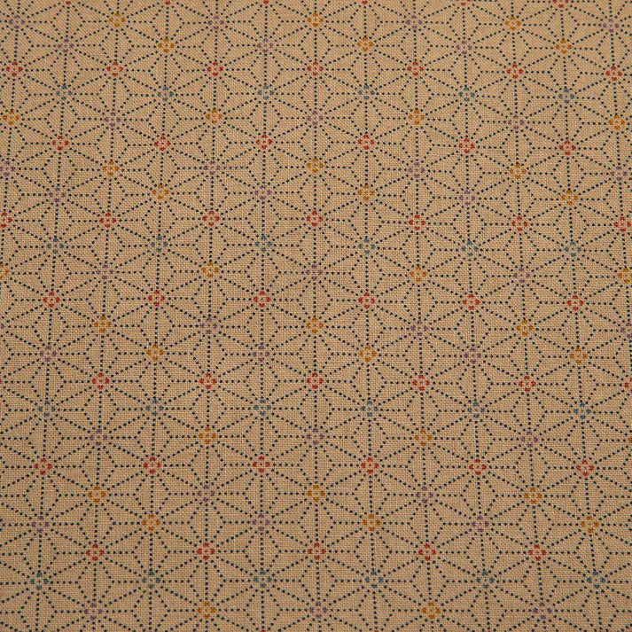 This buckwheat pillow features a beige and maroon asa no ha print on tan fabric. You can learn more about this traditional Japanese pattern on our blog.