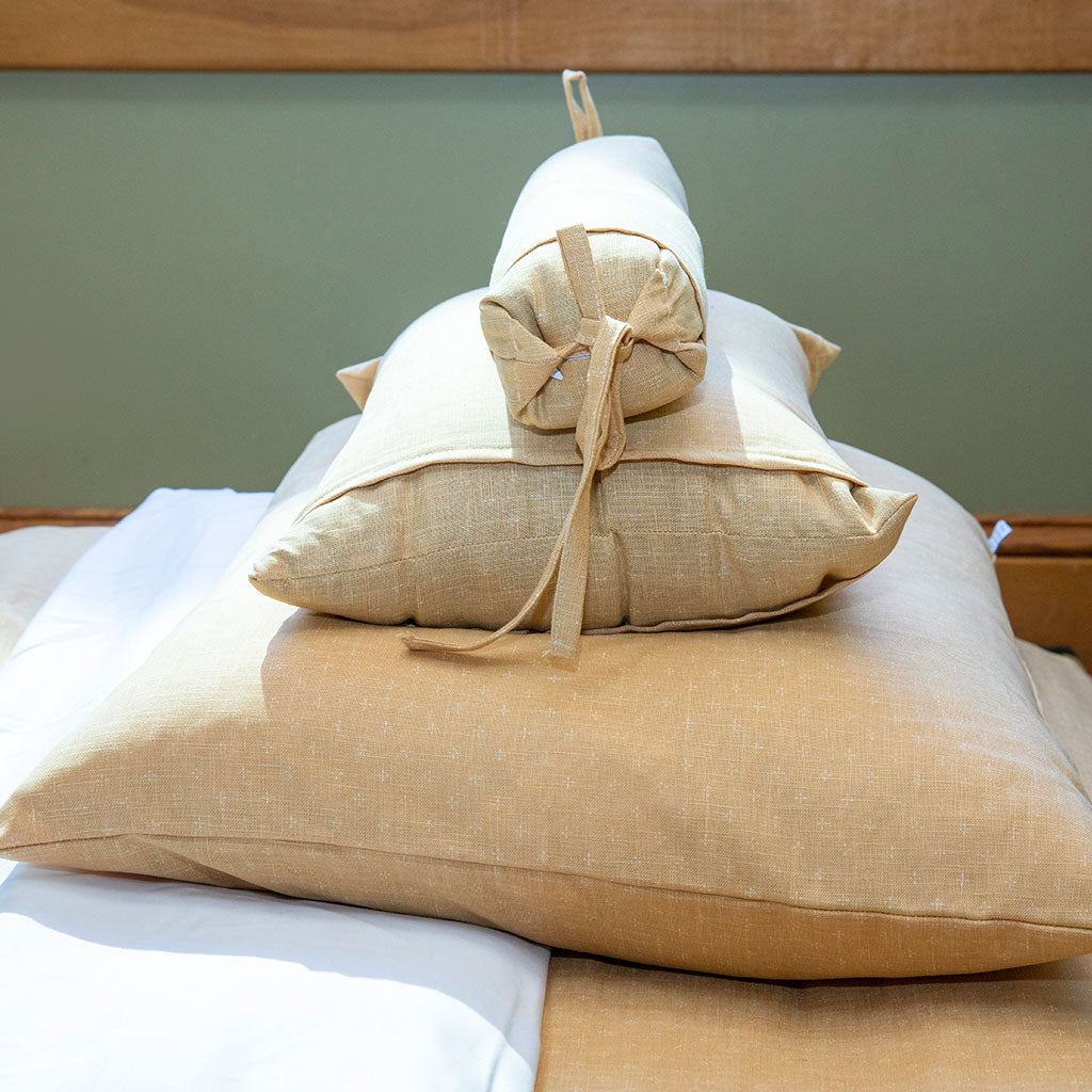 Our handmade buckwheat pillow covers allow you to easily transfer the buckwheat pillow filling from an existing pillow cover into a different one, so you can refresh the look of your Japanese bedding, or replace a damaged/ worn pillowcase.