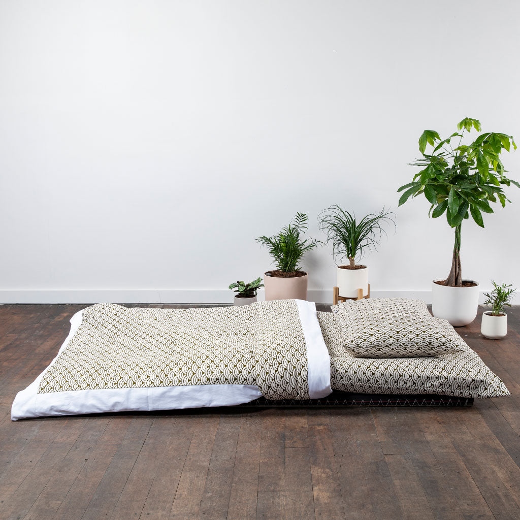 The choice is yours! From traditional Japanese geometric patterns to exotic oriental prints we offer an outstanding selection of fabrics for your kakefuton cover. Whether you choose the traditional bordered style or the more contemporary unbordered cover, these 100% Japanese cotton covers are backed with a luxurious white cotton sateen fabric.