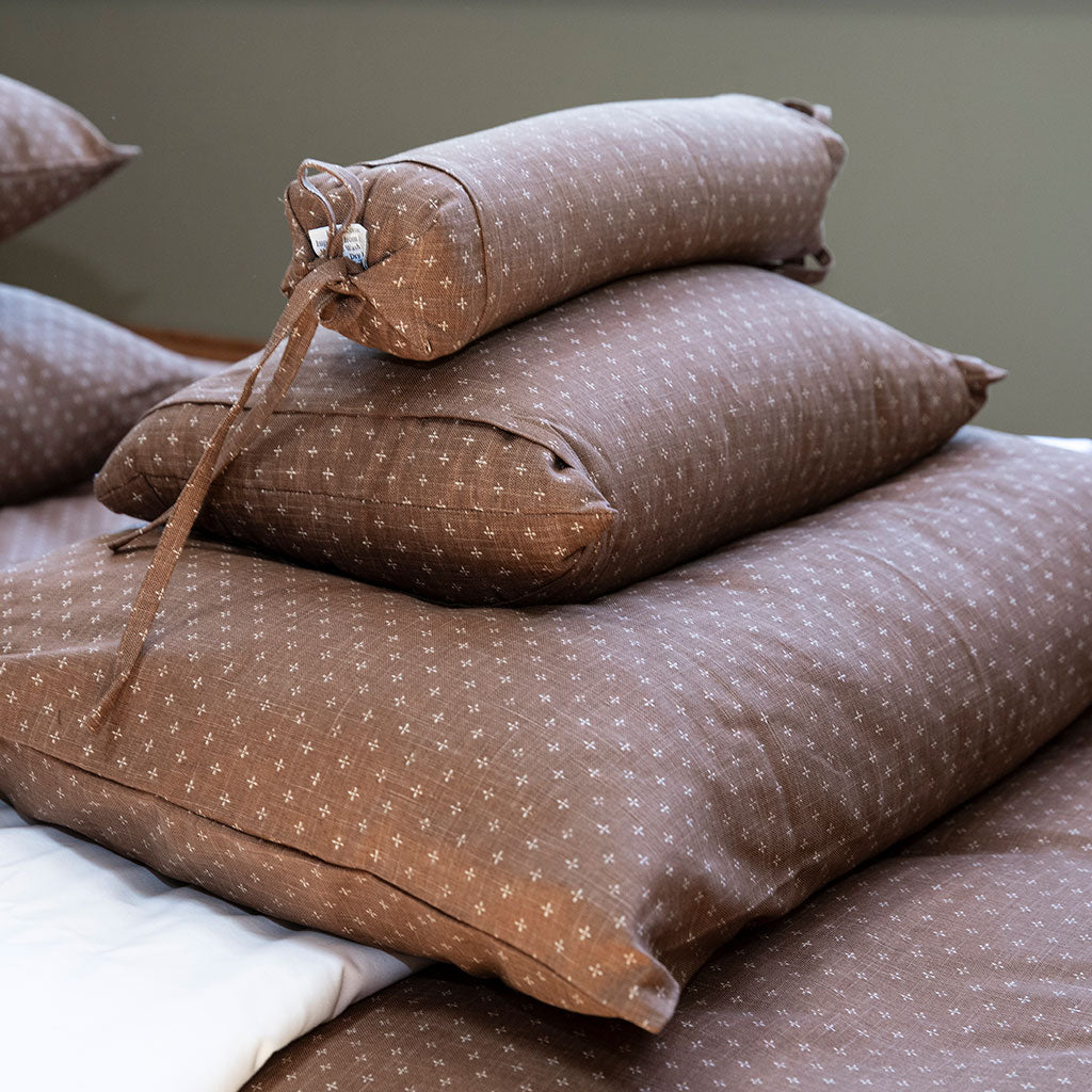 Our buckwheat pillows are available in two styles: the buckwheat neckroll pillow and the rectangular buckwheat pillow (sold separately). Faithful to Japanese tradition, your buckwheat husk pillow set is composed of: