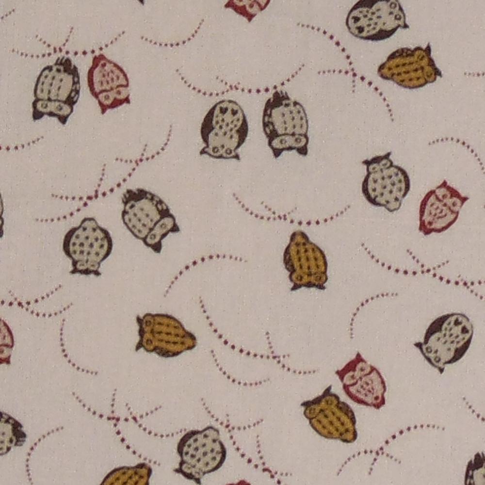 This futon cover features a playful owl print in brown, tan, and red on ivory fabric. Visit our blog to learn more about owls in Japanese culture.