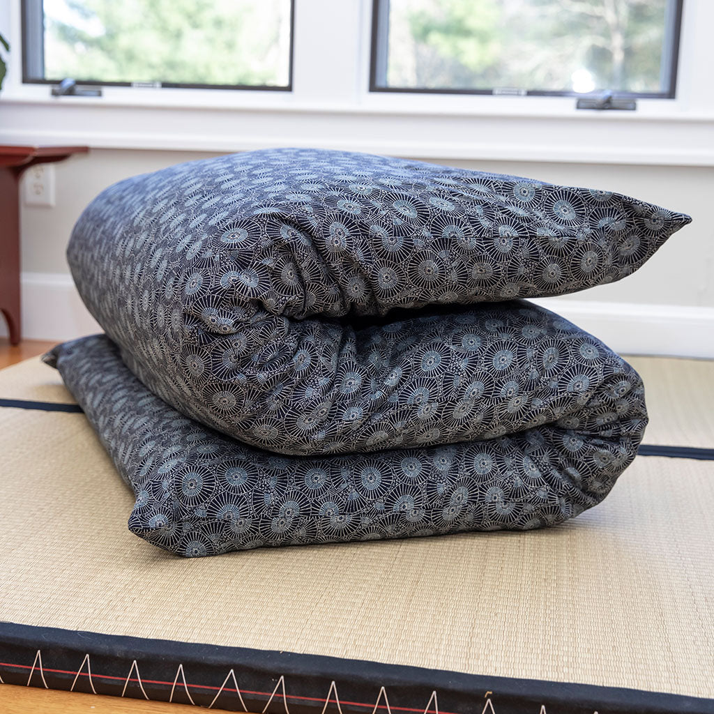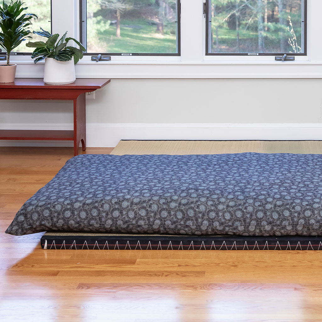 The custom zippered removable cover is designed to snugly fit our Japanese mattress. Each custom removable cover is handmade of high-quality, 100% cotton fabric imported directly from Japan that features traditional Japanese patterns.