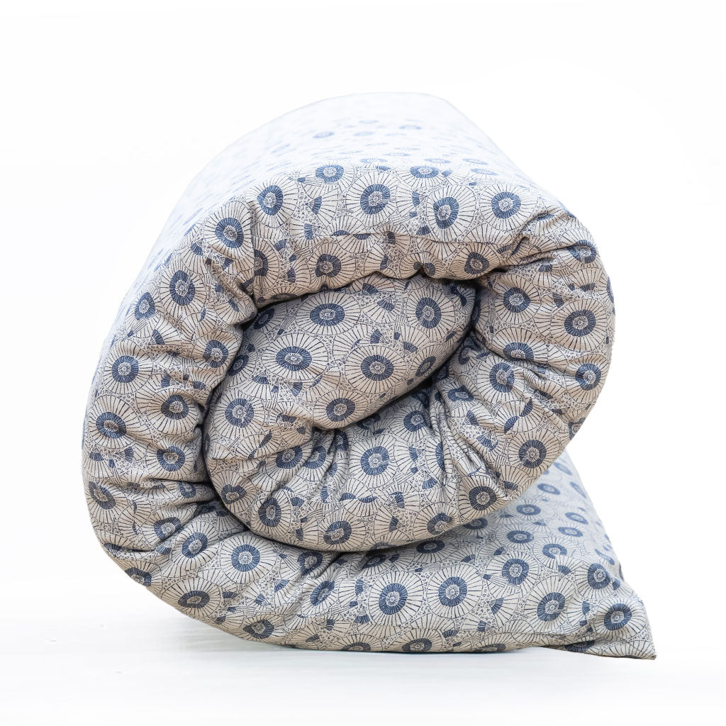 Made to painstaking traditional Japanese specifications by an American manufacturer, the J-Life Shikifuton offers the ultimate comfort of a true shikibuton. This authentic Japanese futon comes with a beautiful removable cover in 100% cotton imported Japanese fabric, as pictured.