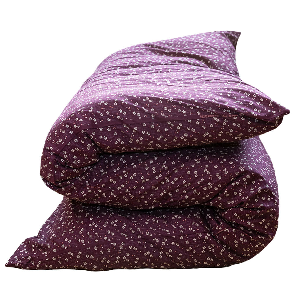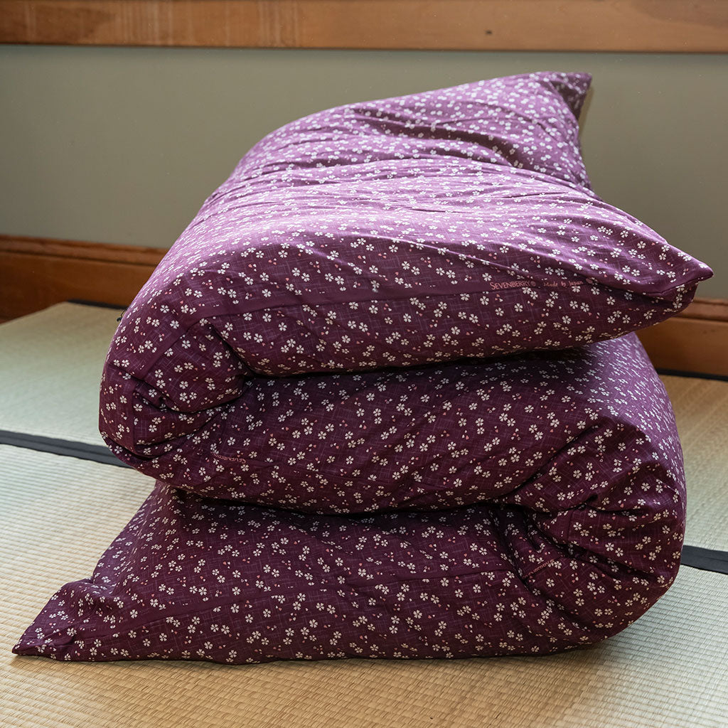This futon cover features a white sakura print on solid purple fabric. You can learn more about this traditional Japanese pattern on our blog.