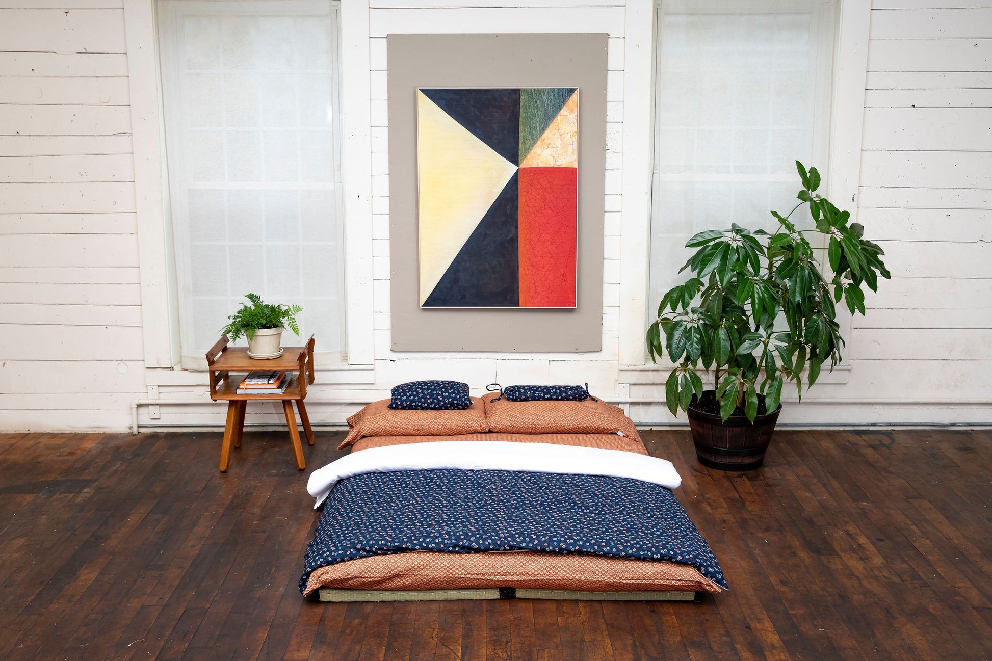 The custom zippered removable cover is designed to snugly fit our Japanese mattress. Each custom removable cover is handmade of high-quality, 100% cotton fabric imported directly from Japan that features traditional Japanese patterns.