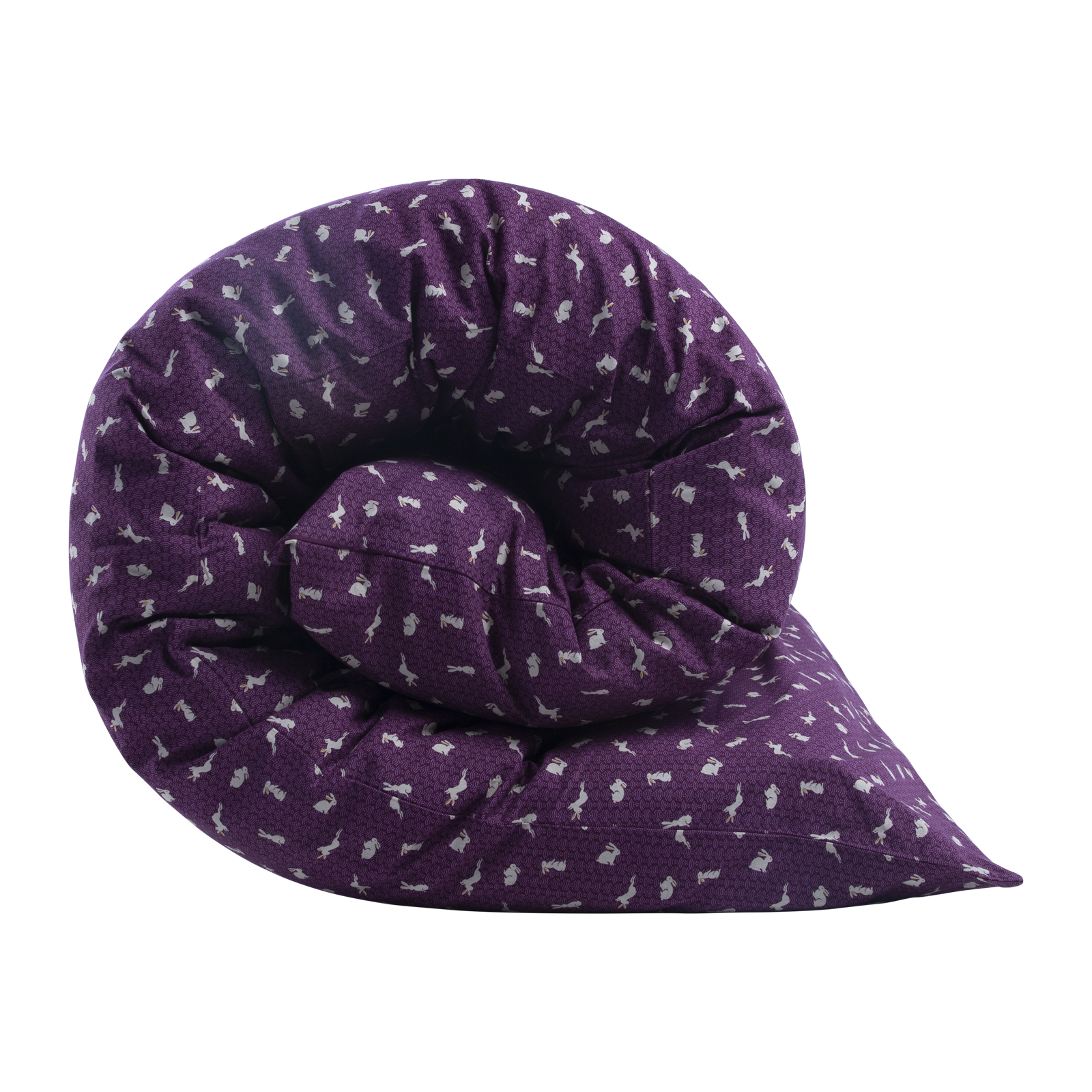 This futon cover features a playful bunny pattern printed on plum-colored fabric. Visit our blog to learn more about rabbits in Japanese culture.