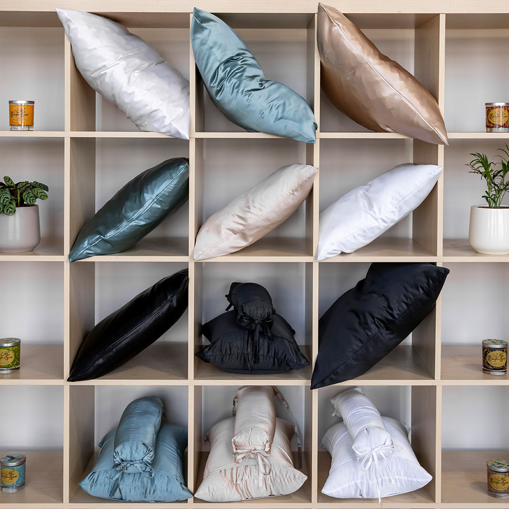 Washable silk pillow cover can be easily removed for machine washing. View our silk bedding care guide here.