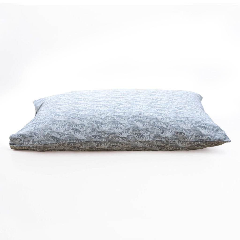 This lovely Japanese pillow cover is made of imported traditional Japanese fabric, featuring the same fabric on both sides. This style features an ocean wave print in the style of traditional Japanese artwork.