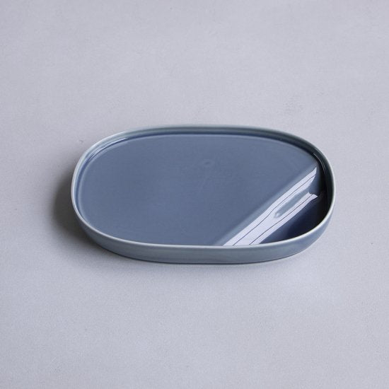 The Suzuri Japanese Plate takes its shape from the traditional inkstone used in Japanese calligraphy. Its lowered section is designed to hold sauces, dips, or spices, keeping them separate from the main dish.