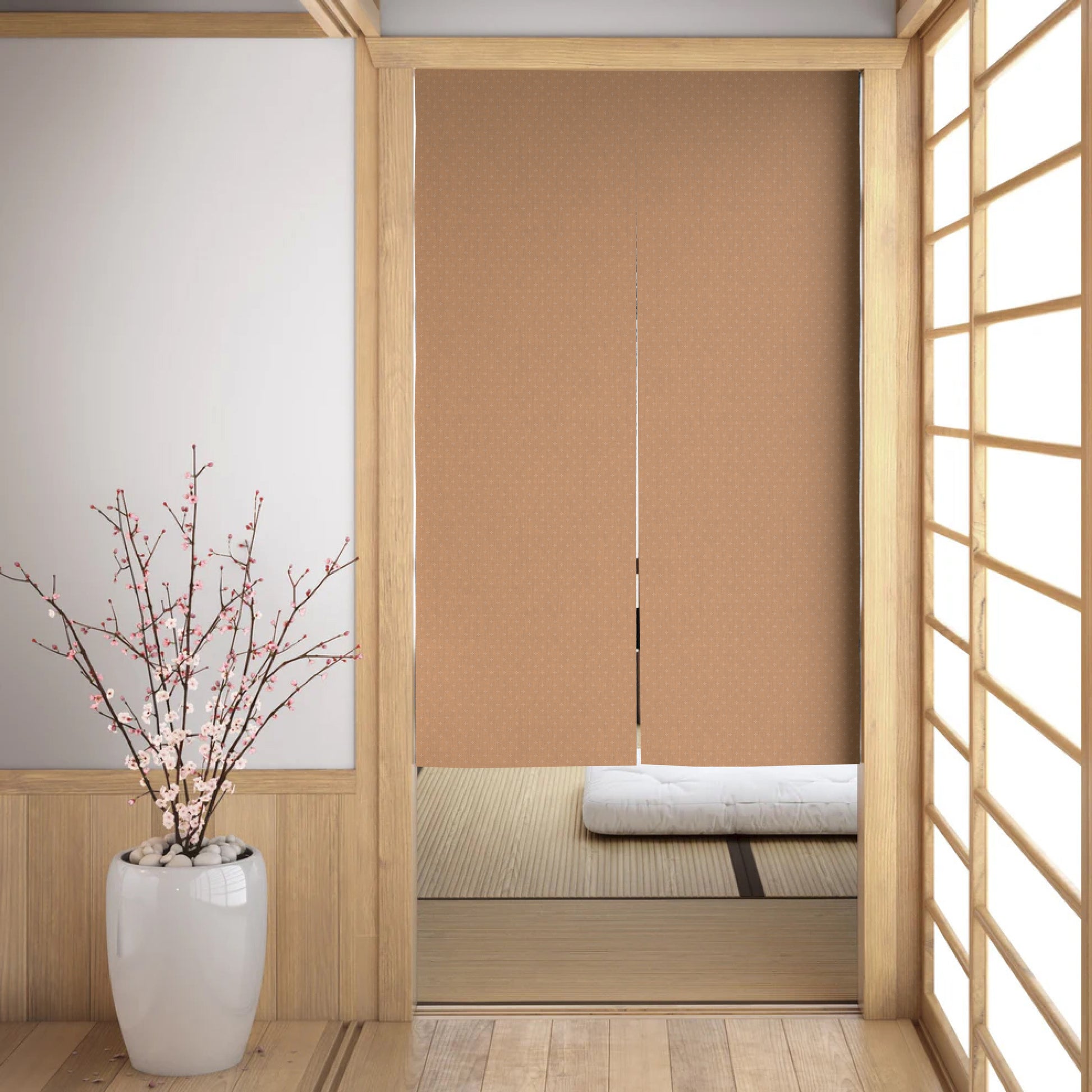 Noren (暖簾) are fabric curtains intended to be hung in doorways as space dividers. They are often used by businesses to block out dirt, smoke, and dust, but are just as popular in homes to divide rooms to create more privacy.