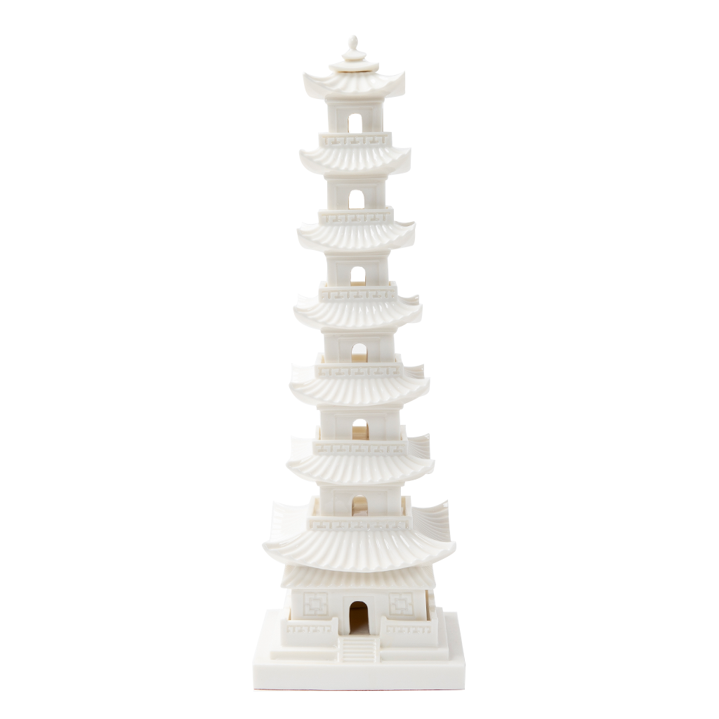 This decorative Porcelain Pagoda Statue features a lofty 7 stories, which is much taller than most pagodas that exist today. The exaggerated height of this piece is a nod to the beauty and grandeur of these traditional temple structures. This unique sculpture adds a tasteful bit of Japanese culture to any Japanese style room.