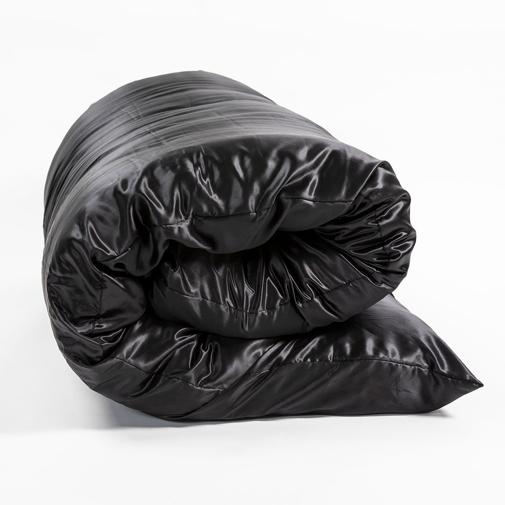 This luxurious, 100% washable silk shikibuton cover features a rich solid black hue. As an all-natural fiber, silk bedding is not only irresistibly soft - it's also moisture-wicking, temperature-regulating, and gentle on skin and hair.